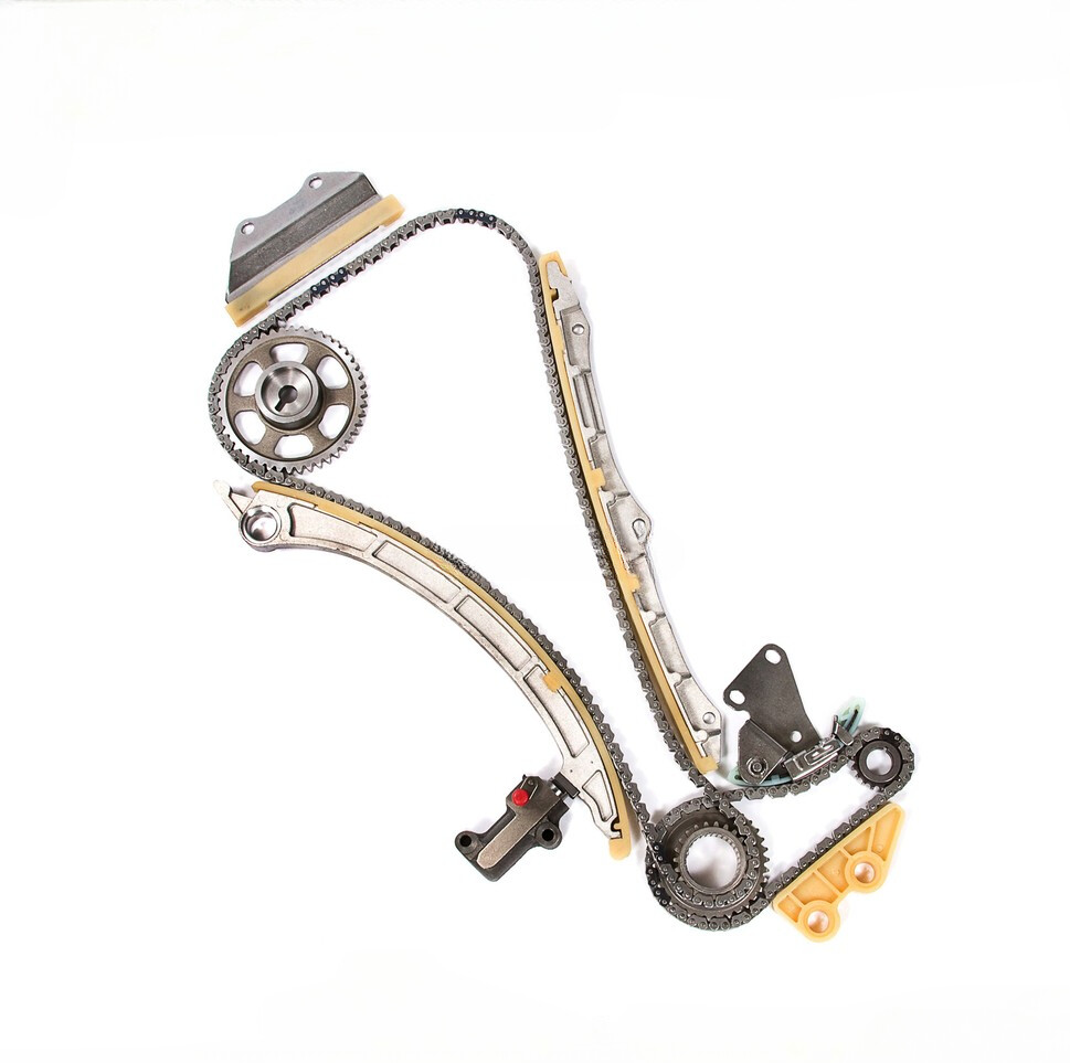 Timing Chain Kit Fit 03-07 Honda Accord CRV Element 2.4 DOHC VTEC K24A1 K24A4 A8. The timing chain is located in the front of the motor and is attached to a set of gears and pulleys that power multiple mechanical components, including the crankshaft and camshaft. In order for your engine to fire, the timing chain must smoothly rotate around the gears without hesitation. Although the timing chain is made out of metal, it is subject to wear and tear and may break if not replaced as recommended by the factory. Since the timing chain can go bad and will need to be replaced, it is important to be able to recognize the symptoms so you can have it repaired before it fails completely. Signs your timing chain needs to be replaced include: Your vehicle has a rough idle, meaning your engine shakes. Your car backfires. The vehicle seems to be working harder than normal. Your car will not start at all, indicated a complete timing chain failure. Be sure to use our aftermarket replacement timing chain kit when your timing chain is serviced for the best performance.