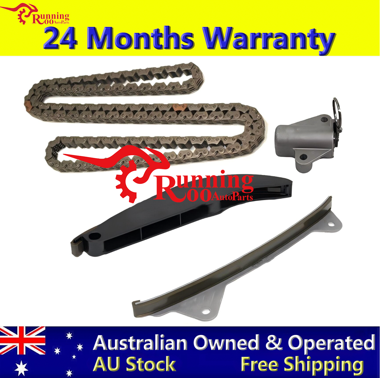 DESCRIPTIONHigh-quality aftermarket Timing Chain Kit designed for Hyundai & Kia vehicles equipped with the NU series 1.8L & 2.0L DOHC-MPi engines.✔ 100% Brand New✔ OEM fit replacement✔ Built for durability and reliability✔ Quality tested to meet or exceed factory standardsFIT ENGINE:2011-2013 Hyundai Elantra 1.8L DOHC-MPi, Engine: NU2011-2013 Hyundai Elantra 2.0L DOHC-MPi, Engine: NU2011-2013 Hyundai i45 2.0L DOHC-MPi, Engine: NU2011-2013 Hyundai i30 1.8L DOHC-MPi, Engine: NU2011-2013 Kia Rio 2.0L DOHC-MPi, Engine: NUPACKAGE INCLUDES:1 × Timing Chain (9-178L)1 × Chain Tensioner1 × Guide Left1 × Guide Right⚠️ REMARKS:Please send us your VIN (chassis number) to confirm compatibility before ordering.📍 RunningRoo Auto Parts – Based in Melbourne, Australia 🇦🇺🛒 Free 24/7 Pickup Available in Melbourne (by appointment)📩 Any questions? Message us anytime – we’re here to help!📌 Why Choose RunningRoo?🇦🇺 Aussie Owned & Operated | 🚚 Fast Shipping | 💬 Friendly Support🌟 High-quality aftermarket replacement – OEM fit🛡 2-Year Warranty – reliability guaranteed🏭 Direct factory supply = competitive price